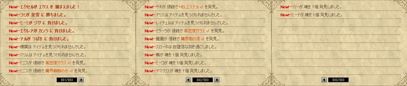 といって寝るわけにもいかないので、今日の侵蝕結果です。かなりアイテムよりの結果でしたね~。2個3個持ち帰ってくれている子もいてなかなか豪華です。でも使わない強化素材ばっかりなんだよねぇ。強化素材で別の強化素材に交換できるシステムがあれば無駄もなくていいのにな~と思う今日この頃。