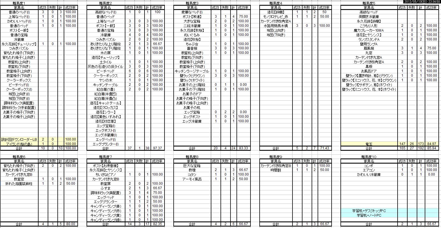 | 難易度 | 試行回数 | 成功率 | |
