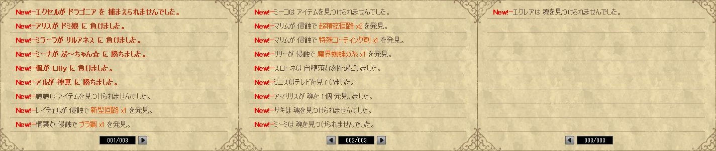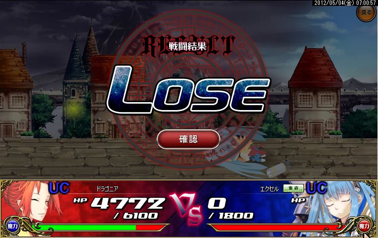 戦闘結果はちょっと負けが多かったかなぁ・・。まぁ勝つ日もあれば負ける日もあるよね!