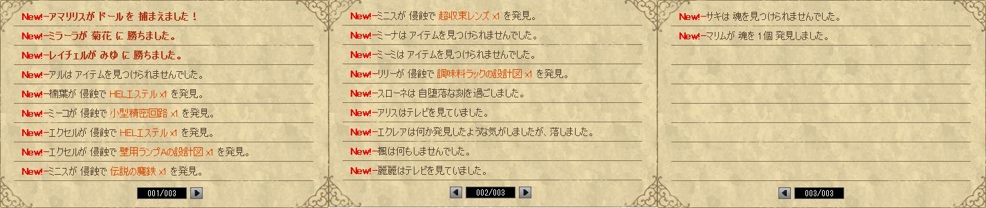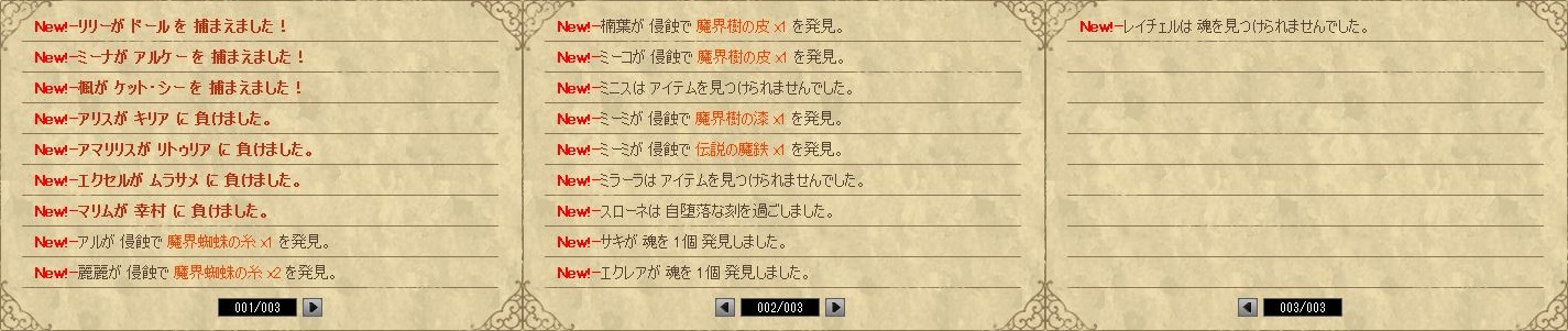 今日はこんな感じでした。アイテムはまぁいつもどおり・・・ん、マリムちゃんが3個獲得か~。頑張ったねヾ(´ω` )ナデナデ 魂は1個獲得。全部拾えてれば4個でウマウマだったんだけどまぁそこは仕方ないね、1個でもありがたいし。