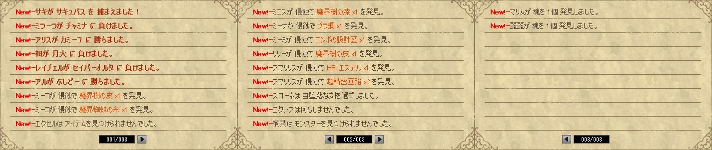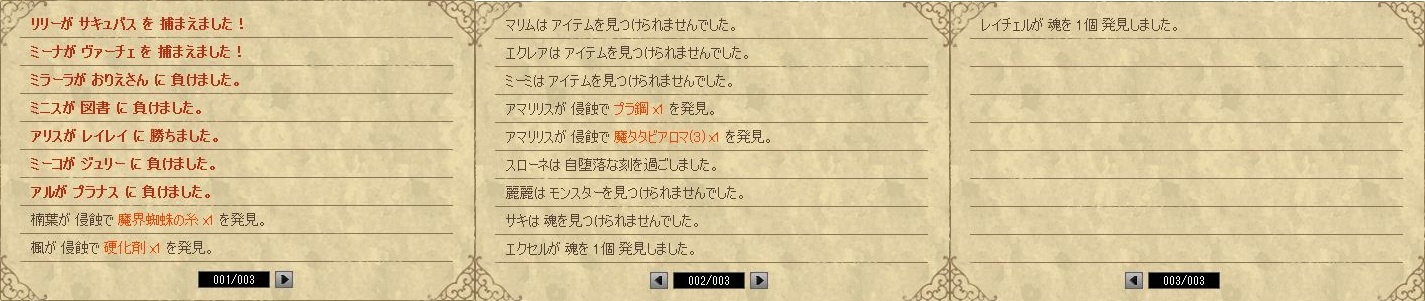 | 名前 | 月 | 火 | 水 | 木 | 中間 | 金 | 土 | 日 | 結果 | 参加者 | (敬称略) | 戦闘 | アイテム | 魂 | |||